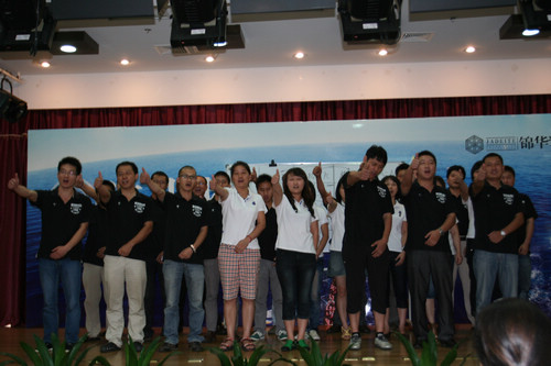 這次股東大會上,錦華的金牌培訓師——主材部曹總,給大家帶來了三個拓展游戲:五張撲克大小PK、模仿不走樣、數數字;帶來現場歡樂的同時,讓所有的人都學會反思和總結;團隊的精神得到充分的體現。淮安分公司的市場經理王志波說,“在南京大區,感受到了溫暖,有了回家的感覺。”這就是集體精神的魅力所在。