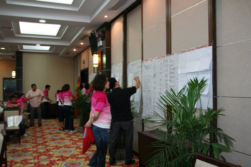 本次股東大會的第一個議題,就是對所有股東在2011年上半年的工作進行績效評估;在股東大會現場,南京大區總經理丁晴通過一系列的數據,詳細描述了所有股東在上半年的工作表現;同時,通過績效考核,宣布了暫時離開股東隊伍的人員名單以及新加入股東隊伍的人員。