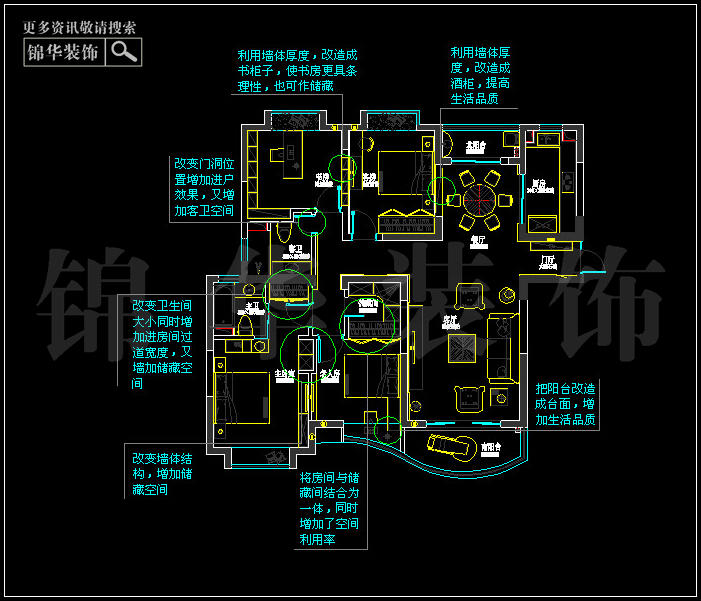 (5)將主臥小陽臺拆除,給主臥增添空間使主臥室功能明朗化,使臥寢功能區擴大。寬敞。