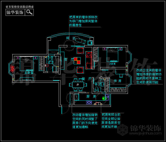 (3)改動衛生間的墻體增加書房的儲物空間的同時不影響書房的整體使用